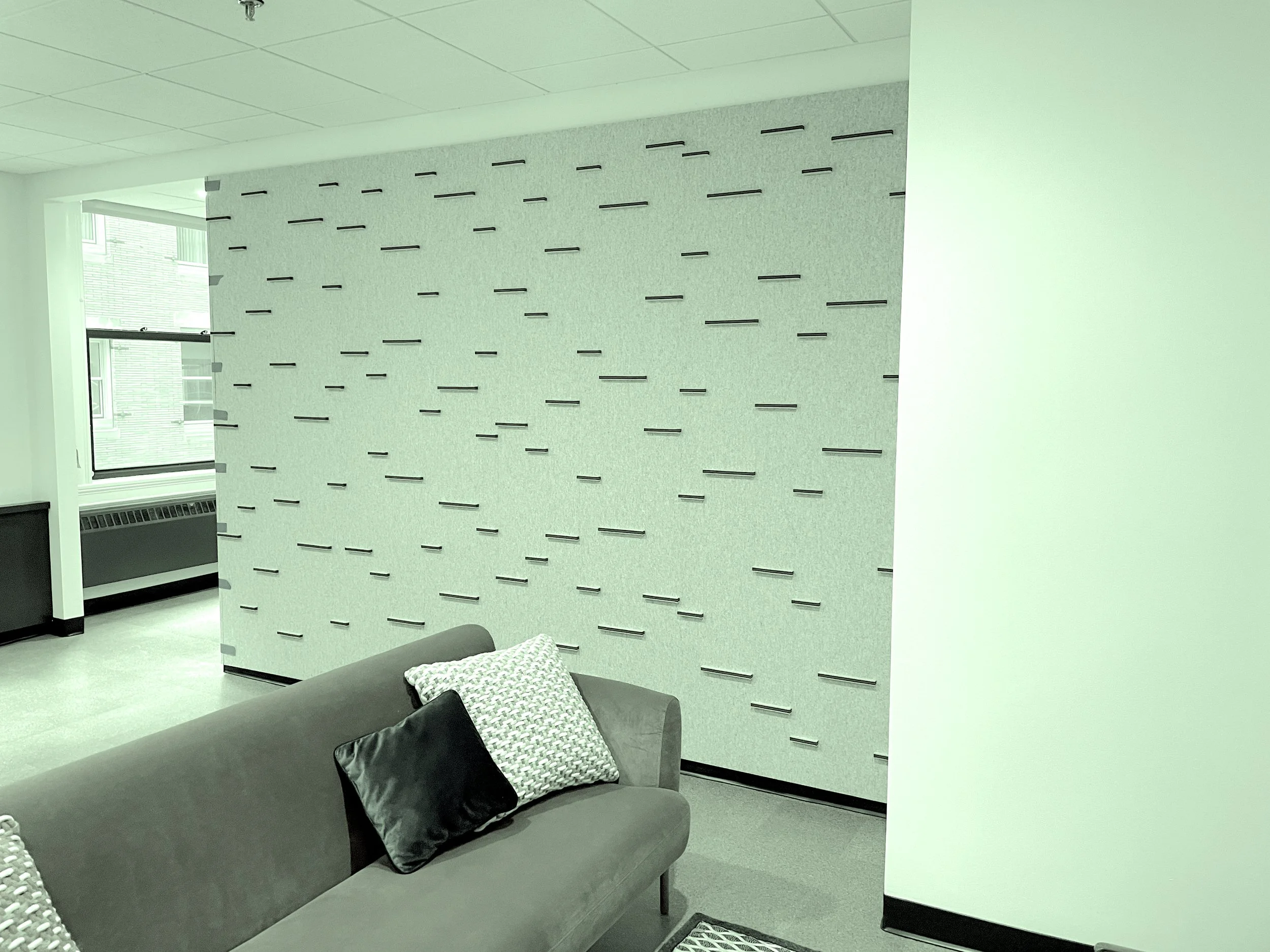 Melanie Harvey Interiors Presents a 3D wall installation to take your space to the next level… We merge… Quiet Acoustical Qualities with Spatial Definition We install FilzFelt.com products to enhance your space!
